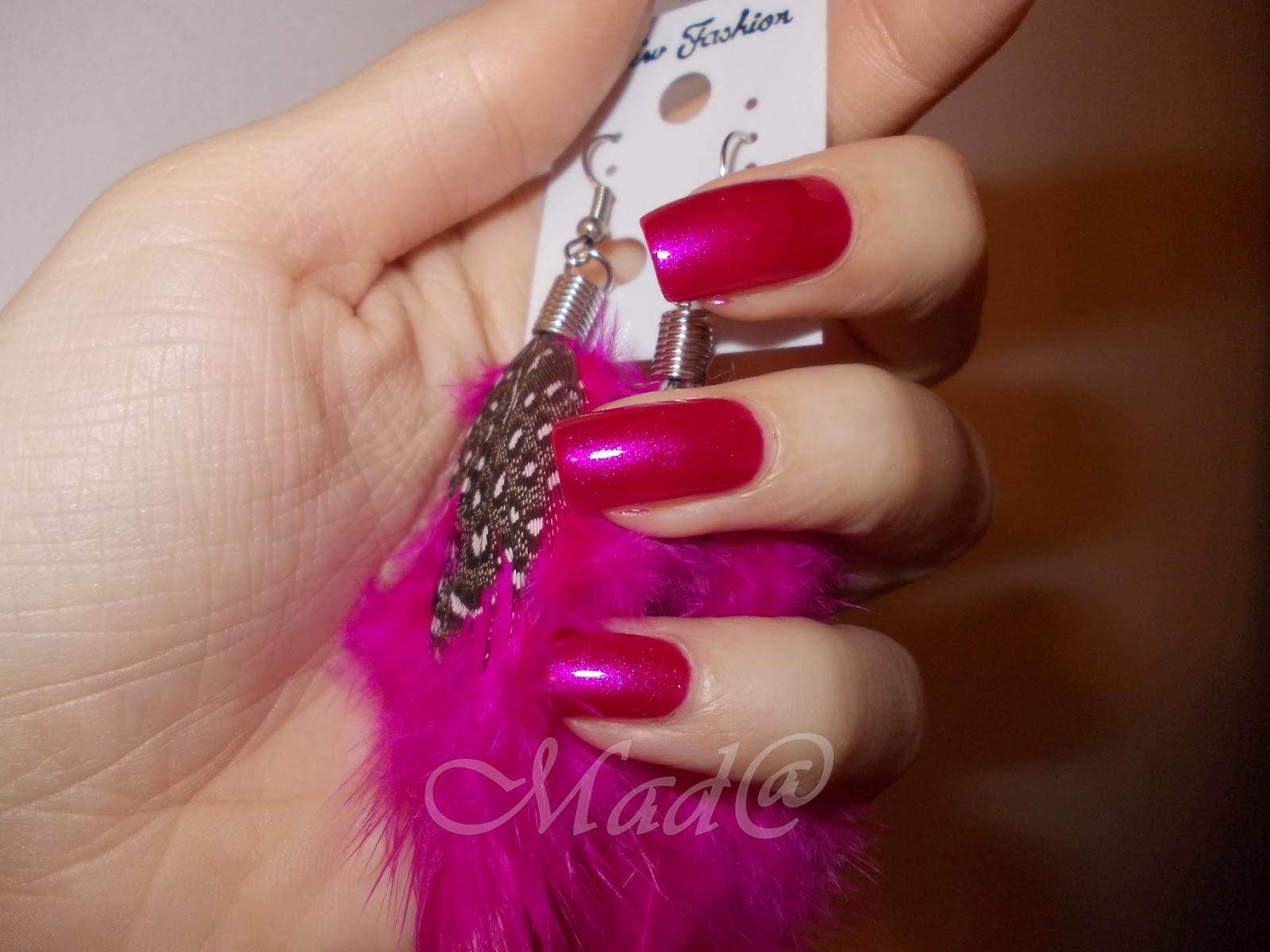Prima varianta si favorita mea - cerceii ciclam cu pene :X